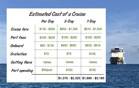 Additionally, be aware that there are certain expenses that are not typically included in the initial cost of a cruise. These may include alcoholic beverages, specialty dining options, spa treatments, shore excursions, and gratuities. It's essential to budget for these additional expenses to ensure you can fully enjoy your cruise experience.
